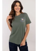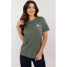 Dámské tričko klasického střihu, vyrobené z kvalitní bavlny, která zajistí pohodlné nošení. Přední část zdobí decentní potisk s nápisem, který tričku dodává módní a minimalistický charakter. Zadní část je ozdobena potiskem spojeným s dynamickými nápisy, které celku dodávají originální výraz. Model má standardní délku, krátké rukávy a kulatý výstřih, skvěle se hodí do každodenních outfitů. Ideální volba pro ženy, které ocení pohodlí a styl v jednom.