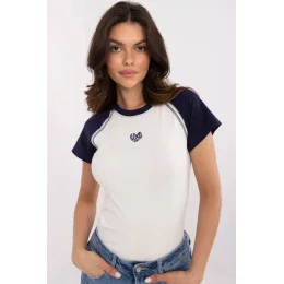 Dámské tričko v casual stylu je kombinací pohodlí a módního designu. Vyrobené z měkkého žebrovaného bavlněného materiálu s přídavkem elastanu zaručuje pohodlné nošení a skvělé přizpůsobení postavě. Klasický kulatý výstřih a krátké rukávy jsou vyrobeny z kontrastního materiálu, který dává tričku výjimečný charakter. Na přední straně je stylový potisk ve tvaru srdce, který zdůrazňuje moderní a uvolněný styl. Standardní délka dělá z trička skvělý doplněk jak k džínům, tak k sukním, vytvářející univerzální základ pro každodenní outfit.