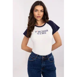 Dámské tričko v casual stylu je kombinací pohodlí a módního designu. Vyrobeno z měkké, žebrované bavlny s přídavkem elastanu, poskytuje pohodlí nošení a skvěle se přizpůsobuje postavě. Klasický, kulatý výstřih a krátké rukávy jsou vyrobeny z kontrastního materiálu, který tričku dodává jedinečný charakter. Na přední straně je stylový potisk s nápisy, který zdůrazňuje moderní a uvolněný styl. Standardní délka z něj dělá skvělý doplněk jak k džínům, tak k sukním, tvořící univerzální základ pro každodenní outfit.