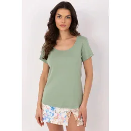 Dámské tričko v casual stylu, ideální na každý den. Vyrobeno z vysoké kvality směsi bavlny a elastanu, poskytuje měkkost, pohodlí při nošení a volnost pohybu. Klasický, hladký design umožňuje snadné sladění s různými styly. Standardní délka, krátký rukáv a kulatý výstřih zdůrazňují jeho univerzální charakter. Must-have v každém šatníku!