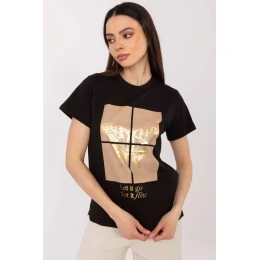 Lehké a pohodlné dámské tričko, ideální na každodenní příležitosti. Vyrobeno z převažující směsi bavlny a elastanu, poskytuje pohodlí nošení a volnost pohybu. Model standardní délky s krátkým rukávem a klasickým kulatým výstřihem skvěle zapadá do casual stylizací. Tričko zdobí efektní aplikace, flitry ve tvaru motýla, které přitahují pohled a dodávají celku módní charakter. Dominantní vzor v kombinaci s jemným potiskem vytváří zajímavý a zároveň univerzální vzhled.