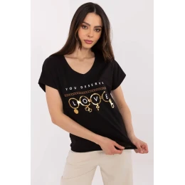 Casual tričko pro ženy ideální na každodenní nošení, kombinující pohodlí s trendy dokončením. Vyrobeno z měkké bavlny s přídavkem elastanu, poskytuje pohodlné nošení a lehké přizpůsobení postavě. Model standardní délky s krátkým rukávem a ženským výstřihem do šípku, který krásně zdůrazňuje linii krku. Tričko se vyznačuje efektním spojením potisku a jemného vyšívaného detailu, vytvářející originální a zároveň stylový prvek. Ideální volba pro ženy, které ocení neformální styl s nádechem elegance na každý den.
