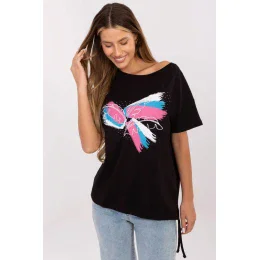 Přidejte trochu lesku do každodenních outfitů s tímto jedinečným dámským tričkem ve stylu casual. Vyrobené z příjemné bavlny s přídavkem elastanu, poskytuje pohodlí a lehké přizpůsobení se postavě. Tričko s klasickou délkou, krátkým rukávem a kulatým výstřihem je ideální pro každodenní nošení, do práce, na procházku nebo setkání s přáteli. Jeho jedinečný charakter zdůrazňuje efektní aplikace na přední straně, kombinující potisk, vyšívání a flitry, což celku dodává moderní a ženský vzhled. Dalším akcentem je šňůrka na levém boku dole, která dodává lehkost a jemnou originalitu. Toto tričko je ideální kombinací pohodlí a stylu, nesmí chybět ve vaší skříni!