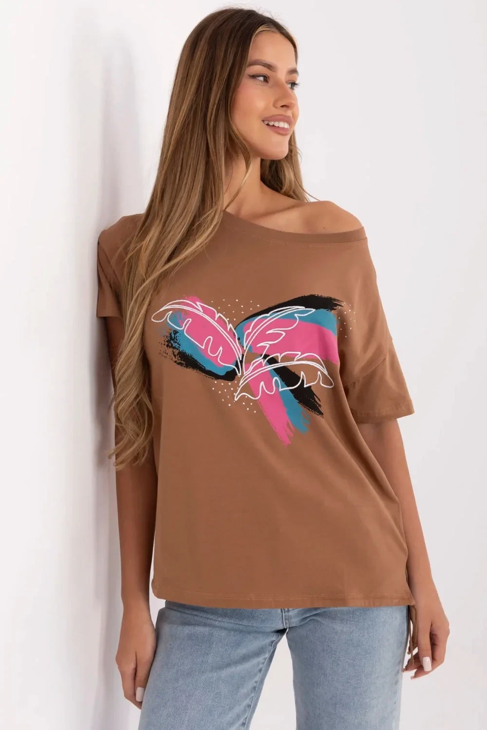 Přidejte trochu lesku do každodenního stylu díky tomuto jedinečnému dámskému tričku ve stylu casual. Vyrobené z příjemné bavlny s přídavkem elastanu, poskytuje pohodlí a lehké přizpůsobení postavě. Tričko standardní délky s krátkým rukávem a kulatým výstřihem se ideálně hodí na každý den, do práce, na procházku nebo setkání s přáteli. Jeho unikátní charakter zdůrazňuje efektní aplikace na přední straně, kombinující tisk, vyšívání a flitry, což dává celku módní a ženský vzhled. Dalším akcentem je šněrování na levém boku dole, které přidává lehkost a jemnou originalitu. Toto tričko je ideální kombinací pohodlí a stylu, nemělo by chybět ve vaší skříni!