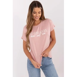 Casual dámské tričko standardní délky je kombinací pohodlí a módního stylu. Vyrobeno z měkké a elastické směsi viskózy a elastanu, zajistí pohodlné padnutí a pohodlí při nošení. Model s krátkým rukávem a klasickým kulatým výstřihem se skvěle hodí do každodenních outfitů. Dominantním prvkem je potisk s nápisy na přední straně, který dodává celku charakter. Skvělá volba na každý den k džínům, legínám nebo sukní.