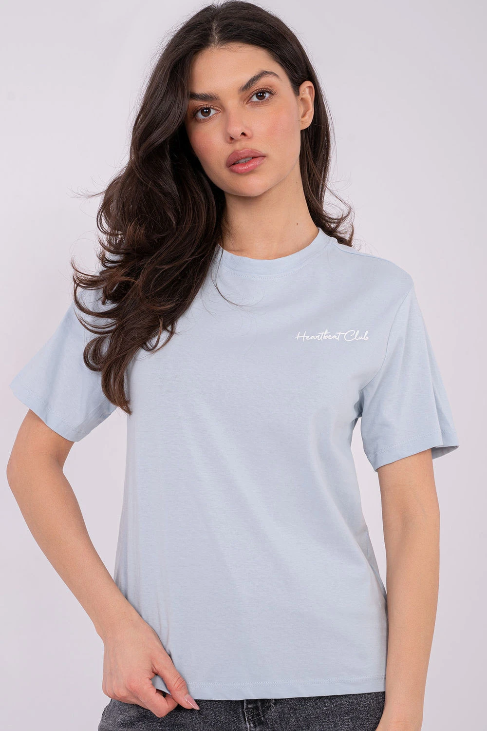Dámské tričko v casual stylu je pohodlný a stylový návrh na každý den. Vyrobeno z vysoce kvalitní bavlny, poskytuje pohodlí nošení, prodyšnost a přirozené přizpůsobení se postavě. Hladká základna trička byla ozdobena decentním malým nápisem vpředu a velkým potiskem na zádech, což mu dodává moderní a výrazný charakter. Model s standardní délkou, s krátkým rukávem a klasickým kulatým výstřihem, se skvěle hodí do každodenních stylizací, vytvářejících módní a volný vzhled.