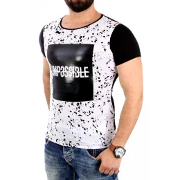 Pánské tričko s krátkým rukávem. Přední strana se vzorem a potiskem.