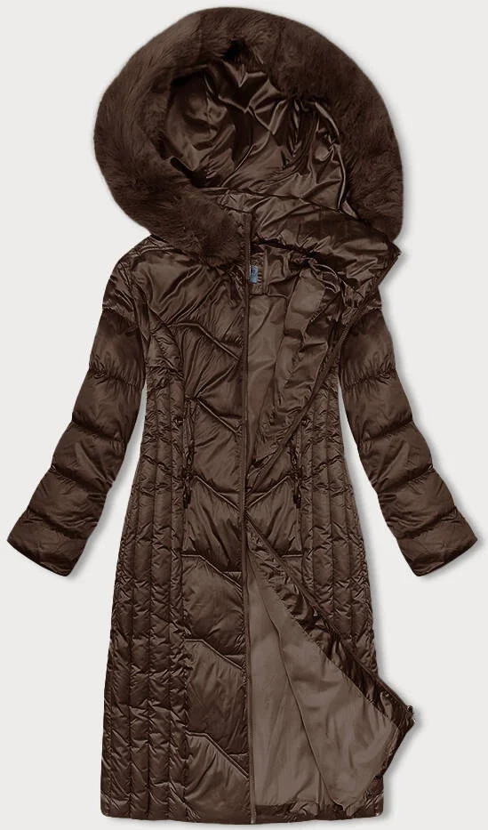 Vypasovaná dlouhá hnědá dámská zimní bunda S'west (B8201-14)
