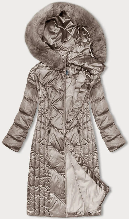 Vypasovaná dlouhá dámská zimní bunda v barvě cappuccino S'west (B8201-12)