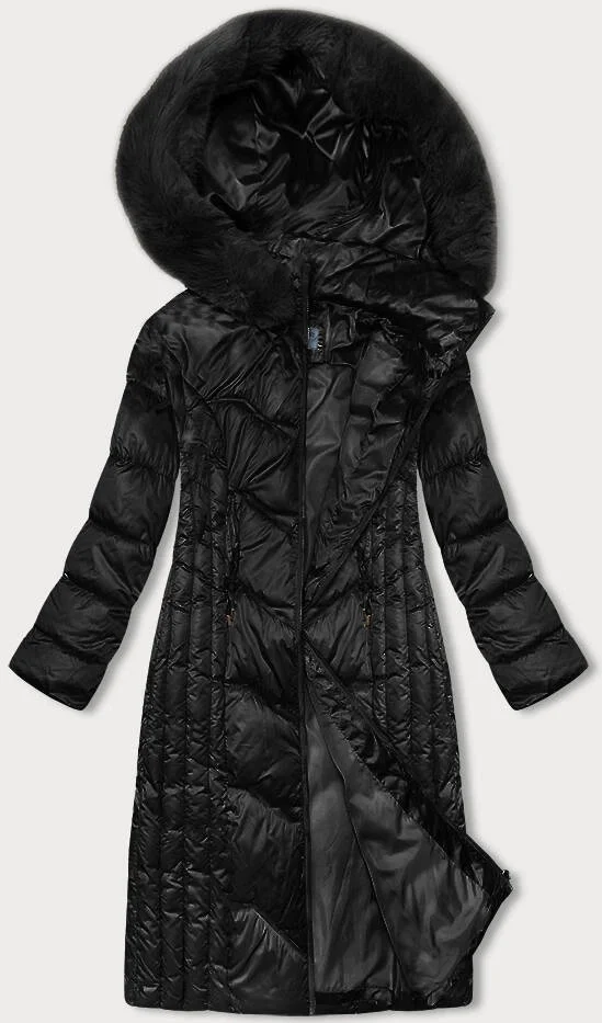 Vypasovaná černá dlouhá dámská zimní bunda S'west (B8201-1)
