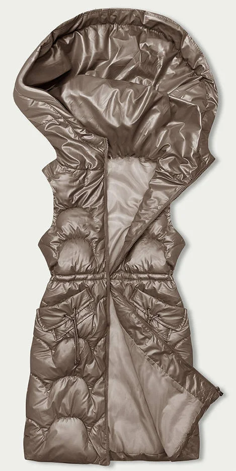 Vypasovaná vesta v barvě cappuccino s kapucí (B8172-12)