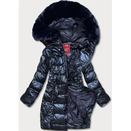 Tmavě modrá dámská vypasovaná zimní bunda (2M-028)