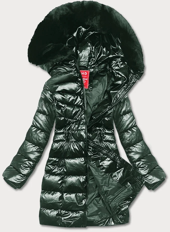 Tmavě zelená dámská vypasovaná zimní bunda (2M-032)