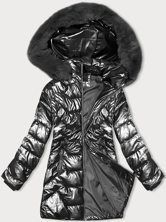 Vypasovaná zimní bunda v grafitové barvě s kapucí J Style (16M9122-105)