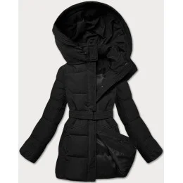 Černá vypasovaná zimní bunda s opaskem (23MY-207)