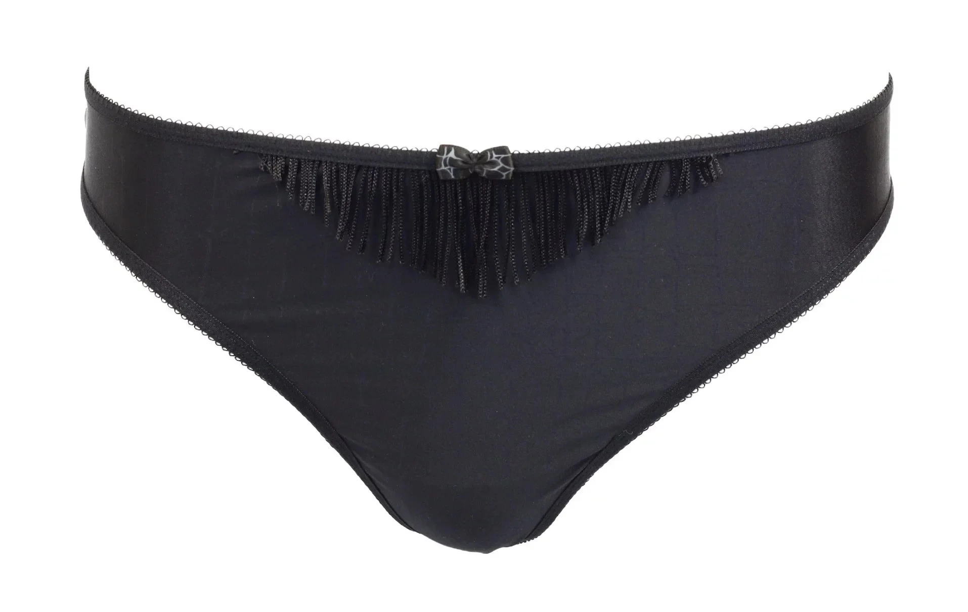 Krásné tanga Marlies Dekkers. Hladký povrch s vypalovaným vzorem ozdoba střapečky v přední i zadní části kalhotek. Nádherné stříbrné peříčko umístěné na zadním díle kalhotek.