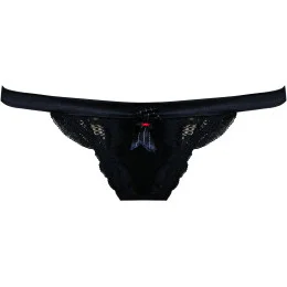 Krásná krajková tanga Pleasure State zvýrazněné saténovým lemem, doplněné červenou stuhou. Dobře padnoucí střih sexy vzhled.