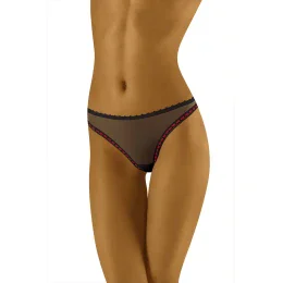 Smyslná tanga z lehce průsvitné síťoviny, na okrajích zdobená saténovou stuhou v červené barvě. Elegantní a sexy. Složení: 90 % polyamid, 10 % elastan.