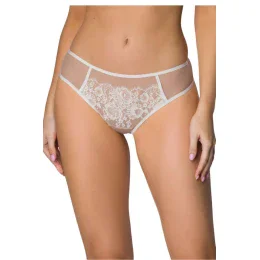 Tanga Frances v barvě béžové mléko jsou jedinečnou nabídkou pro ženy, které oceňují eleganci a jemnost prádla. Jsou zdobeny jemnou květinovou krajkou vpředu, která zdůrazňuje jejich smyslný charakter. Zadní část tanga je ozdobena jemným krajkovým detail, který jim dodává ženský šarm a lehkost. Vyrobeny z měkkých, příjemných materiálů pro pokožku, poskytují pohodlí po celý den. Tanga Frances jsou ideálním doplňkem k prádlové sadě, která spojuje pohodlí s rafinovaným stylem.