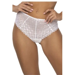 Dámské bílé tanga Elif S-3802/42 vyrobené z geometrické krajky, které jim dodávají jedinečný charakter. Lehce zakryté boky poskytují pohodlí a jemné zdůraznění postavy. Zadní část z dvojitého tylu, který je jak jemný, tak odolný, dodává tanga smyslný vzhled.