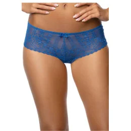 Svůdná a svůdně průhledná tanga Marina vyrobená výhradně z jemné modré krajky. Sexuálně zahalují ženské půvaby. Bavlněný klín.