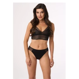 Sentimentální a jemné dámské tanga vytvořené s ohledem na maximální pohodlí a eleganci. Zadní část je vyrobena z jemné krajky, která přidává spodnímu prádlu ženský šarm, a díky ploché gumičce se model nevyznačuje pod oblečením, zůstává neviditelný dokonce i pod přiléhavým oblečením. Vnitřek je vybaven bavlněným vložkou, která zajišťuje pohodlí a hygienu nošení po celý den. Tanga jsou balena v elegantní krabičce, ideální také jako dárek.