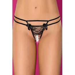 Originální a smyslná tanga jistě upoutají vaši pozornost... a nejen vaše. Dvojitý černý pásek podtrhne oblost vašich boků, jemná krajka potěší svým ženským zdobením. Saténové mašle jsou hravým a okouzlujícím detailem. Jedná se o jedinečnou nabídku pro originální ženu, lákavou individualistku...