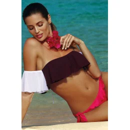 Jedinečný top z nejnovější kolekce na léto 2018, vzdušný a sexy, v latinskoamerickém kubánském stylu. Top smyslně odhaluje ramena a je jedním z nejmódnějších plážových kousků sezóny. Je vyrobena z pružné tkaniny, která umožňuje její multifunkčnost - můžete ji nosit i na plavání nebo opalování. Vypadá skvěle s šortkami nebo plážovou sukní. Má zcela přirozený vzhled - žádné tvarované košíčky ani vyztužující vložky. Výstřih a spodní část topu jsou na gumičku, díky které dokonale přiléhá k tělu. Zavazování vzadu. Objednejte si ho a vypadejte prostě skvěle!