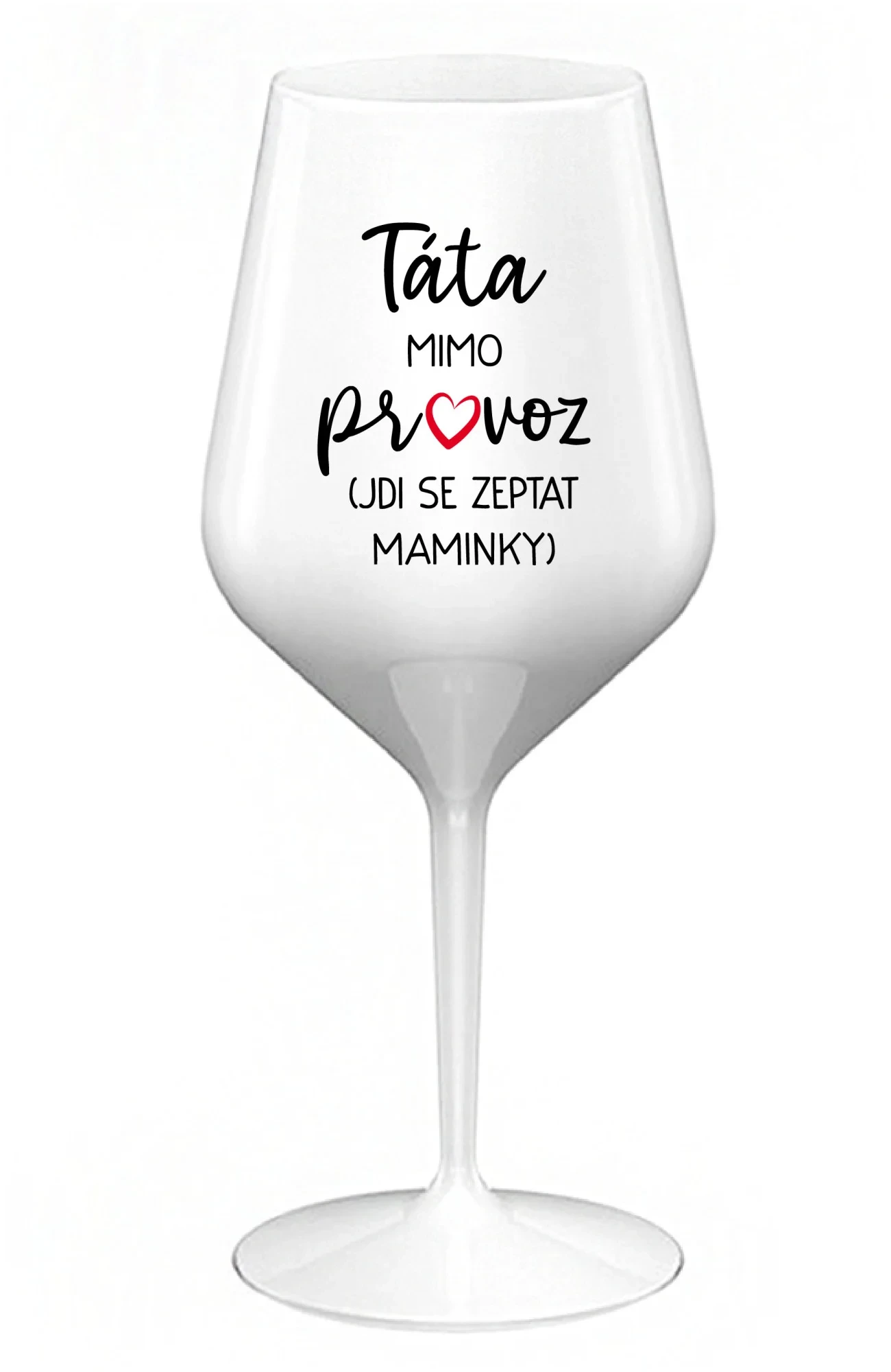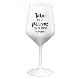 TÁTA MIMO PROVOZ (JDI SE ZEPTAT MAMINKY) - bílá nerozbitná sklenice na víno 470 ml