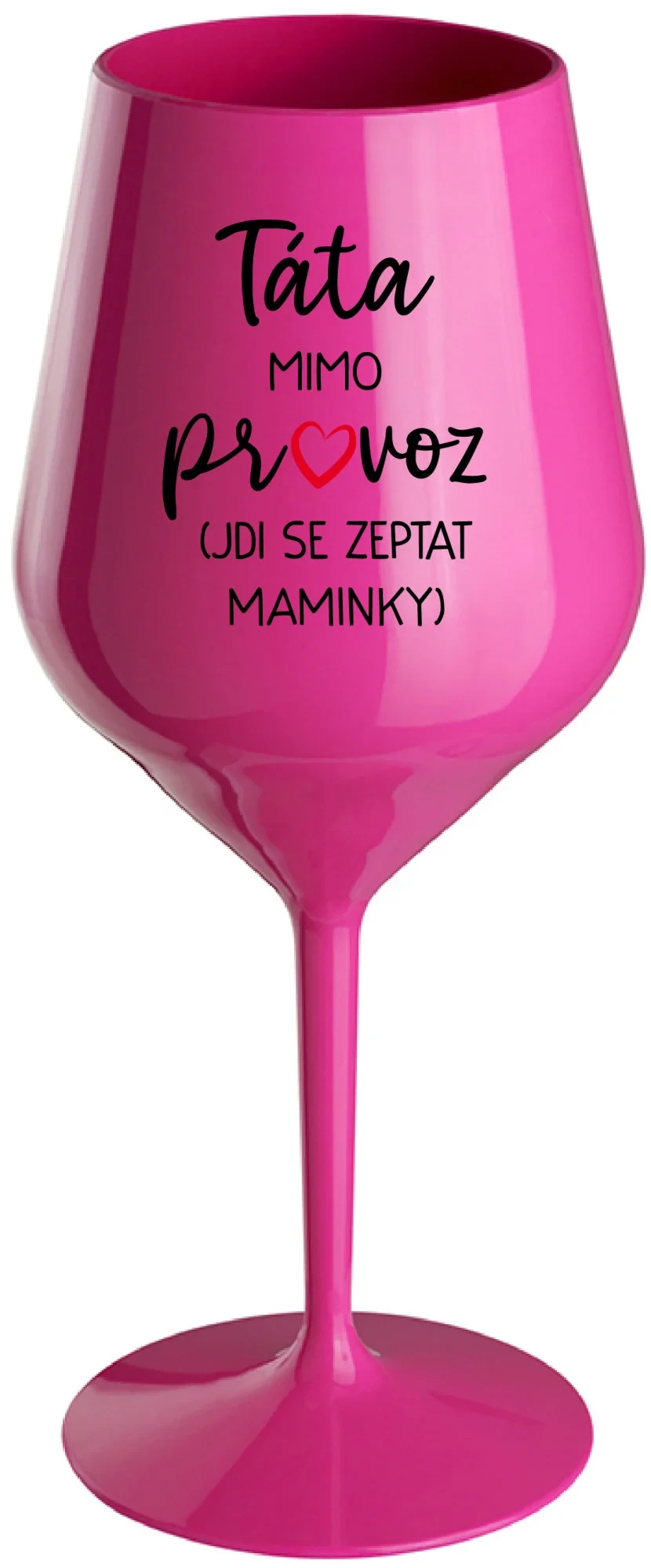 TÁTA MIMO PROVOZ (JDI SE ZEPTAT MAMINKY) - růžová nerozbitná sklenice na víno 470 ml
