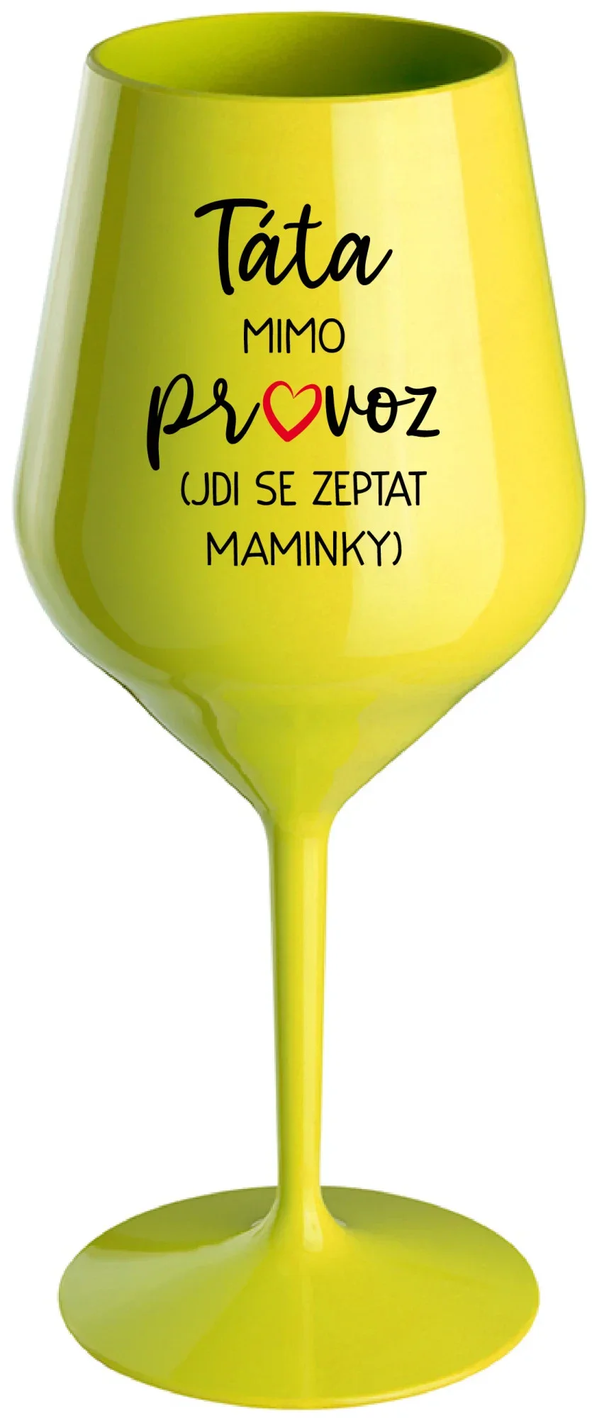 TÁTA MIMO PROVOZ (JDI SE ZEPTAT MAMINKY) - žlutá nerozbitná sklenice na víno 470 ml