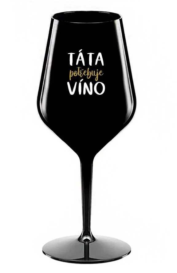 TÁTA POTŘEBUJE VÍNO - černá nerozbitná sklenice na víno 470 ml