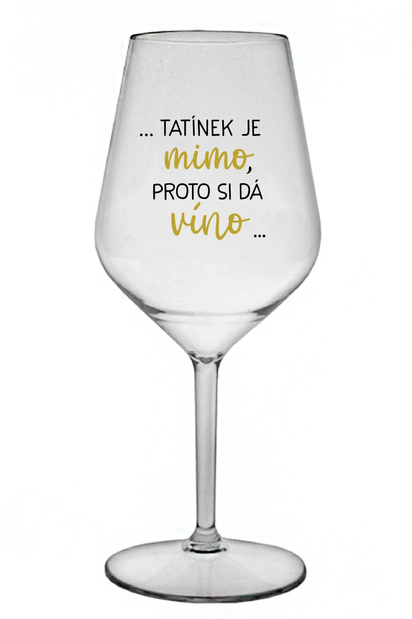...TATÍNEK JE MIMO, PROTO SI DÁ VÍNO... - čirá nerozbitná sklenice na víno 470 ml
