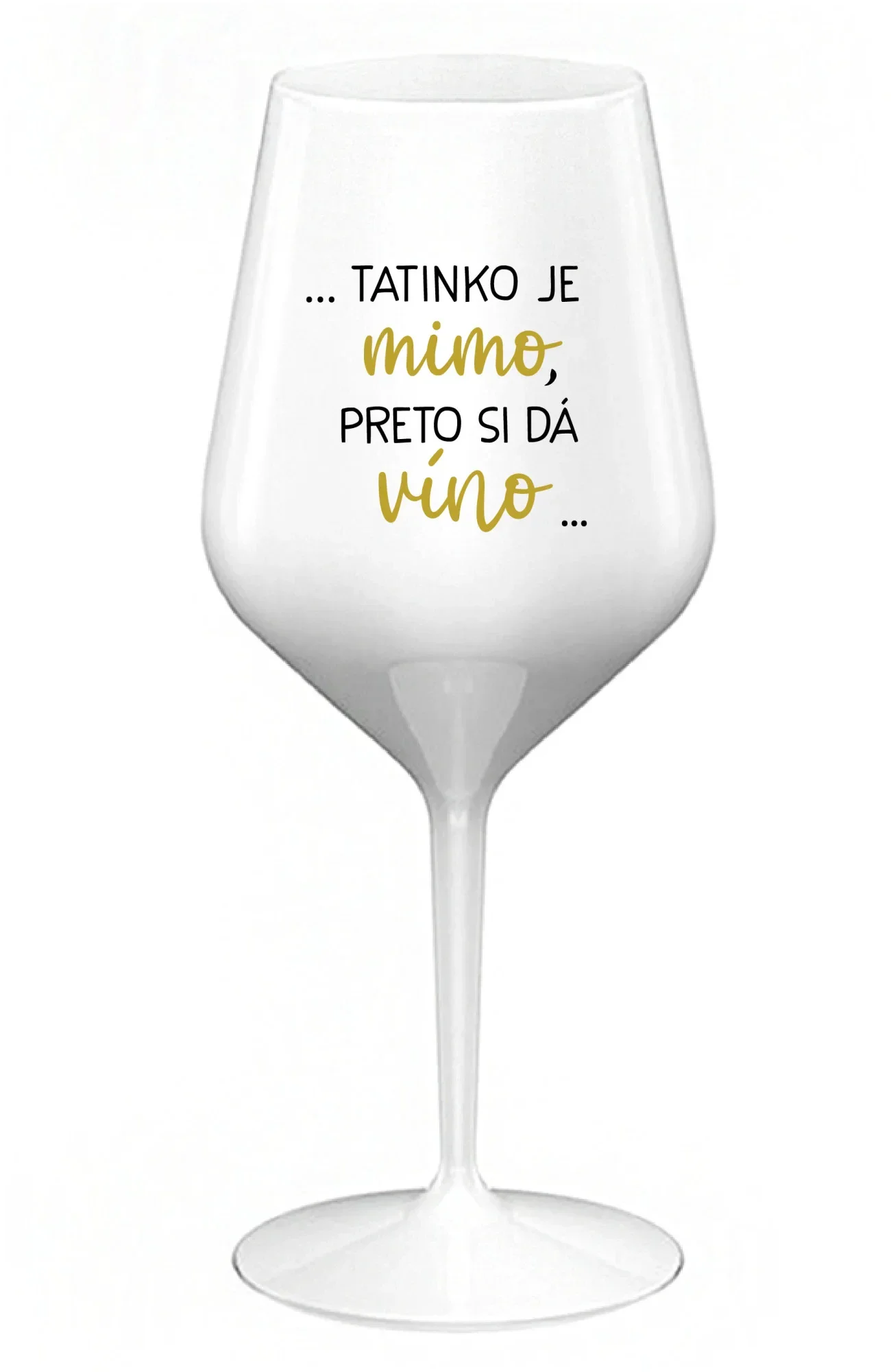 ...TATINKO JE MIMO, PRETO SI DÁ VÍNO... - biely nerozbitný pohár na víno 470 ml