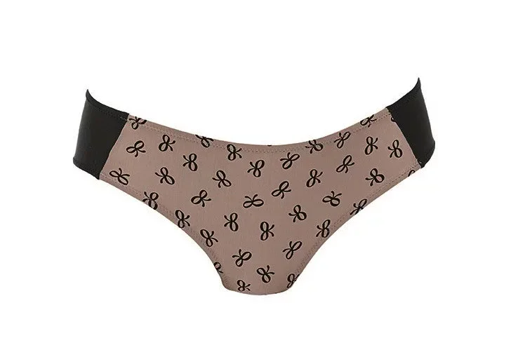 Těhotenské kalhotky z příjemného a prodyšného mikrovlákna se vzorem drobných mašliček v jemné béžové barvě v kombinaci se staro-růžovou