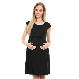 Těhotenské šaty volného střihu s rozšířenou spodní částí. Šaty s ozdobnou mašlí na přední straně a kapsami.
