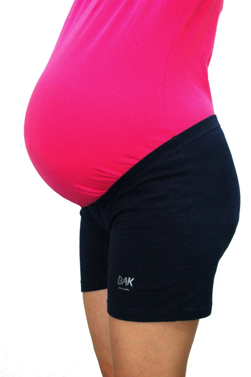 Bavlněné těhotenské šortky značky BAK. Velmi pohodlný model pod bříško, s měkkou, nestahující gumou, bez těhotenského pruhu díky čemuž jsou ideální i na horké dny. 95% bavlna, 5% elastan.