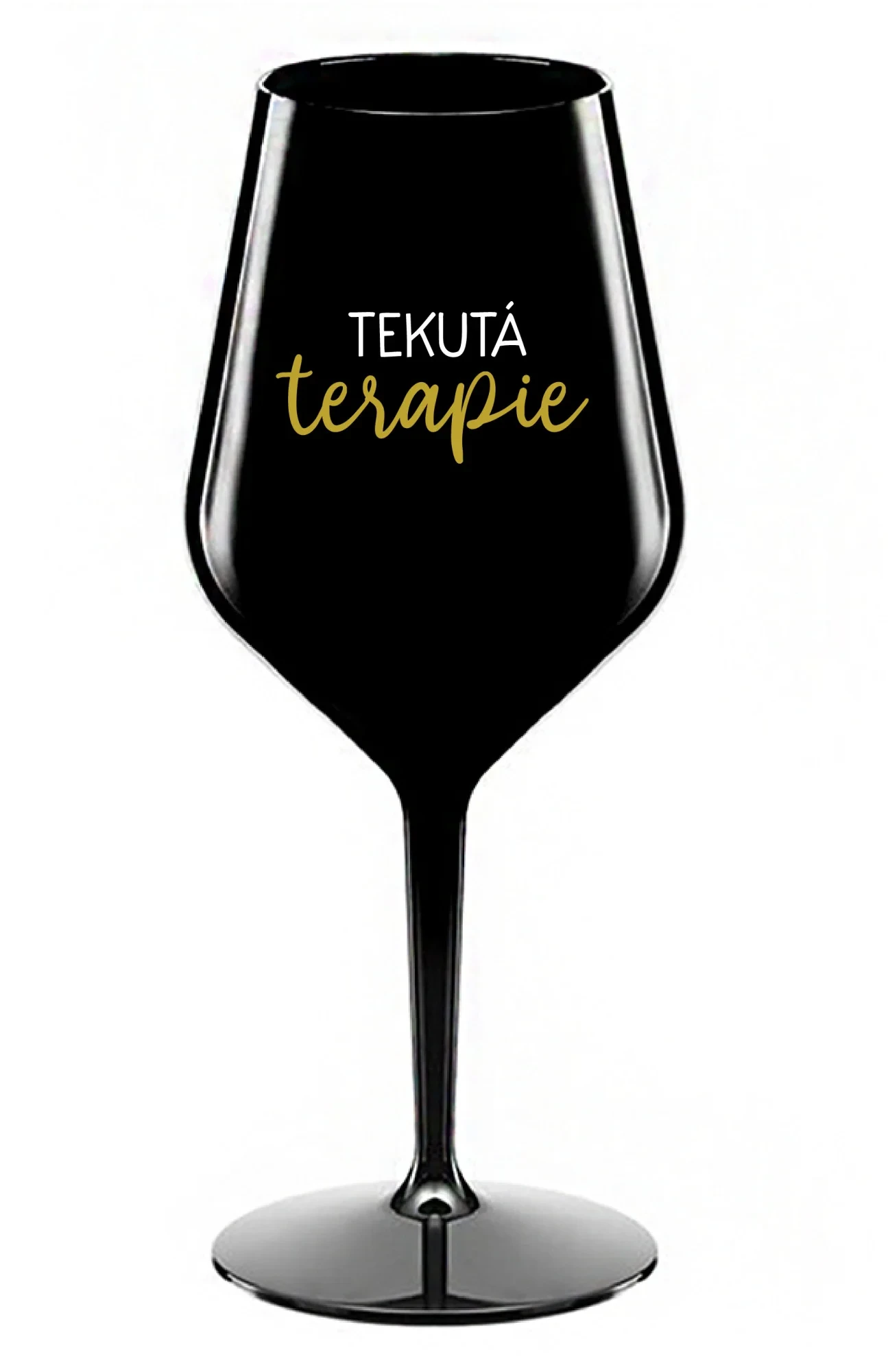 TEKUTÁ TERAPIE - černá nerozbitná sklenice na víno 470 ml