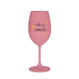 TEKUTÝ DÁREČEK - růžová sklenice na víno 350 ml