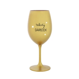 TEKUTÝ DÁREČEK - zlatá sklenice na víno 350 ml