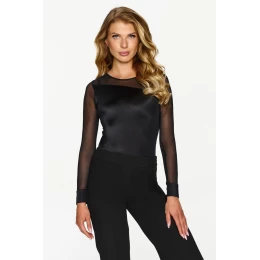Klasické TĚLO 256 je esencí elegance a minimalismu v té nejlepší podobě. Je vyrobeno z hladké, elastické tkaniny, dokonale přiléhá k tělu a zdůrazňuje jeho přirozené linie. Dlouhé rukávy a decentní průhledné vsadky dodávají celku lehký a moderní charakter. Toto tělo je ideální jak pro kancelářské outfity, tak pro večerní vycházky — je dokonalým základem pod sako nebo samostatným prvkem elegantního vzhledu. Pohodlí, styl a ženskost v jednom.