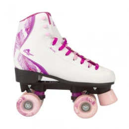 Wrotki TEMPISH Nessie Peaccok Klasyczne wrotki zaprojektowane z myślą o ludziach, którzy chcą się dobrze bawić na ulicach lub zacząć od tego sportu. But ma klasyczny kształt i design z anatomiczną owijką wokół kostek i miękką wyściółką w ścięgnie Achillesa zapewniającą swobodny i pewny ruch. Anatomicznie ukształtowany język z miękką owijką doskonale kopiuje kształt stopy. But ma system sznurowania. Sznurowadła są dwukolorowe, a po dokręceniu prezentują ciekawy efekt, gdy dwa kolory się zmieniają. Wrotka wyposażona jest w wysokiej jakości komponenty (podwozie PP, koła PUC, łożyska ABEC 7 chromowane ...), a zwłaszcza wysokiej jakości amortyzatory PU o twardości 84A. Zastosowanie: Rekreacyjna jazda na wrotkach, taniec, dla początkujących i zaawansowanych. Powłoka: Średnio wzmocniony but, materiał: PVC, klasyczny kształt wrotki powyżej kostki Materiał wewnętrzny: Aksamitna wyściółka z pianki, wzmocniona w okolicy kostki, dla większego komfortu Podwozie: P