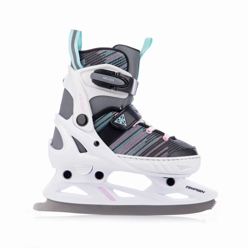 łyżwy/Rolki regulowane TEMPISH Systent Girl Duo Całoroczna zabawa na lodzie i asfalcie! TEMPISH Systent Girl Duo to praktyczny model 2w1, który pozwala dziecku korzystać zarówno z jazdy na lodzie, jak i na rolkach. Konstrukcja umożliwia szybkie przełączanie pomiędzy ostrzem a podwoziem z kółkami, dzięki czemu sprzęt sprawdza się o każdej porze roku. Wytrzymała i elastyczna skorupa zachowuje swoje właściwości nawet w temperaturach do –20°C, zapewniając stabilne wsparcie kostki. Miękkie, szybkoschnące wnętrze gwarantuje komfort podczas nauki i zabawy. Regulacja rozmiaru jednym przyciskiem pozwala ustawić cztery zakresy rozmiarów, dzięki czemu łyżwy „rosną” razem z dzieckiem, a klasyczny system zapięcia ułatwia szybkie i bezpieczne dopasowanie. Główne cechy: Podwójna konstrukcja 2w1: Możliwość szybkiej zamiany ostrza na podwozie z kółkami poprzez odkręcenie trzech śrub. Wytrzymała i elastyczna skorupa: Zachowuje właściwości do –20°C, oferując stabiln