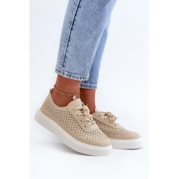 Dámské tenisky s prolamovaným svrškem. Vyrobeno z ekologické kůže. Osazené na platformě. Zaoblená špička. Měkká pěnová stélka, kterou lze také vyjmout, zajistí pohodlí při každém kroku.