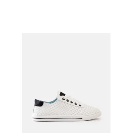 Bílé perforované tenisky Ruala jsou inovativní boty, ideální na letní dny. Jejich moderní design s zaobleným noskem a šněrovací svršek zajistí pohodlí a styl. Vyrobené z gumy jsou lehké a prodyšné, co je činí skvělou volbou na horké dny. Navíc jim nízká silueta skvěle ladí s mnoha letními styly. Vnější část boty je vyrobena z ekokože, nemají žádnou podšívku a podešev je vyrobena z bílé gumy. Boty z letní kolekce se zapínáním na šněrování.