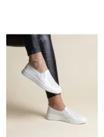 Bílé krajkové tenisky Dafina Adidas jsou ideální volbou pro ty, kteří hledají nízkou obuv s kulatým noskem vyrobenou z elastického kaučuku. Jejich perforovaný design je nejen velmi módní, ale také velmi pohodlný. Ideální pro mladou generaci, která dbá na módu a chce být v čase. Tyto slip-on tenisky budou skvělým doplňkem každého casual outfitu. Materiál vrchní části: Ekologická kůže Zateplení: žádné Materiál podešve: Pryž Barva podešve: Bílá Uzavírání: Nastrčení Kolekce: léto/jaro