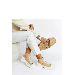 Beige tenisky Ronchis jsou skvělou volbou na léto pro všechny milovníky moderního designu a pohodlí. Jejich elegantní design s tkaničkou umožňuje ideální přizpůsobení noze, kulatá špička jim dodává půvab. Vysoká konstrukce tenisek poskytuje stabilitu a podporu noze, zároveň však poskytuje pocit lehkosti a pohodlí. Střední podpatek jim dodává decentní eleganci, což znamená, že se skvěle hodí jak na každodenní nošení, tak na speciální události. Vnější materiál zajišťuje dostatečnou ventilaci nohou, co znamená, že jsou ideální na horké dny. Béžová barva skvěle ladí s letními outfity, zdůrazňující letní atmosféru. Trampky Ronchis jsou spojením stylu, elegance a pohodlí, které jistě splní očekávání každé módní nadšenkyně.