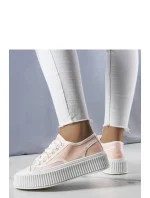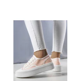 Růžové tenisky na platformě Delores jsou ideální volbou pro ty, kteří ocení pohodlí a styl. Tenisky jsou vyrobeny z vysoké kvality tkaniny, mají pohodlnou textilní vložku a gumovou vložku zpevňující špičku. Kotníkový svršek zdobený jemnými švy dodává teniskám charakter, a tlustá podešev zdobená svislými drážkami zajišťuje stabilitu a pohodlí při nošení. Tenisky Delores skvěle ladí s módními džíny a oversized mikinou, vytvářejíc streetwearový vzhled. Velikost je standardní, takže je vhodné se řídit svou velikostí při nákupu. Ideální na léto, bez dalšího podšívání, s bílou gumovou podrážkou a šněrováním.