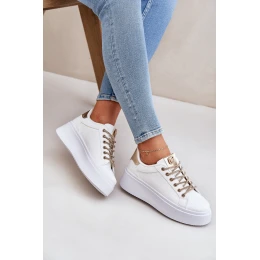 Tenisky Na Platformě S Ozdobnými Šňůrkami Bílá-Zlatá Fonetha