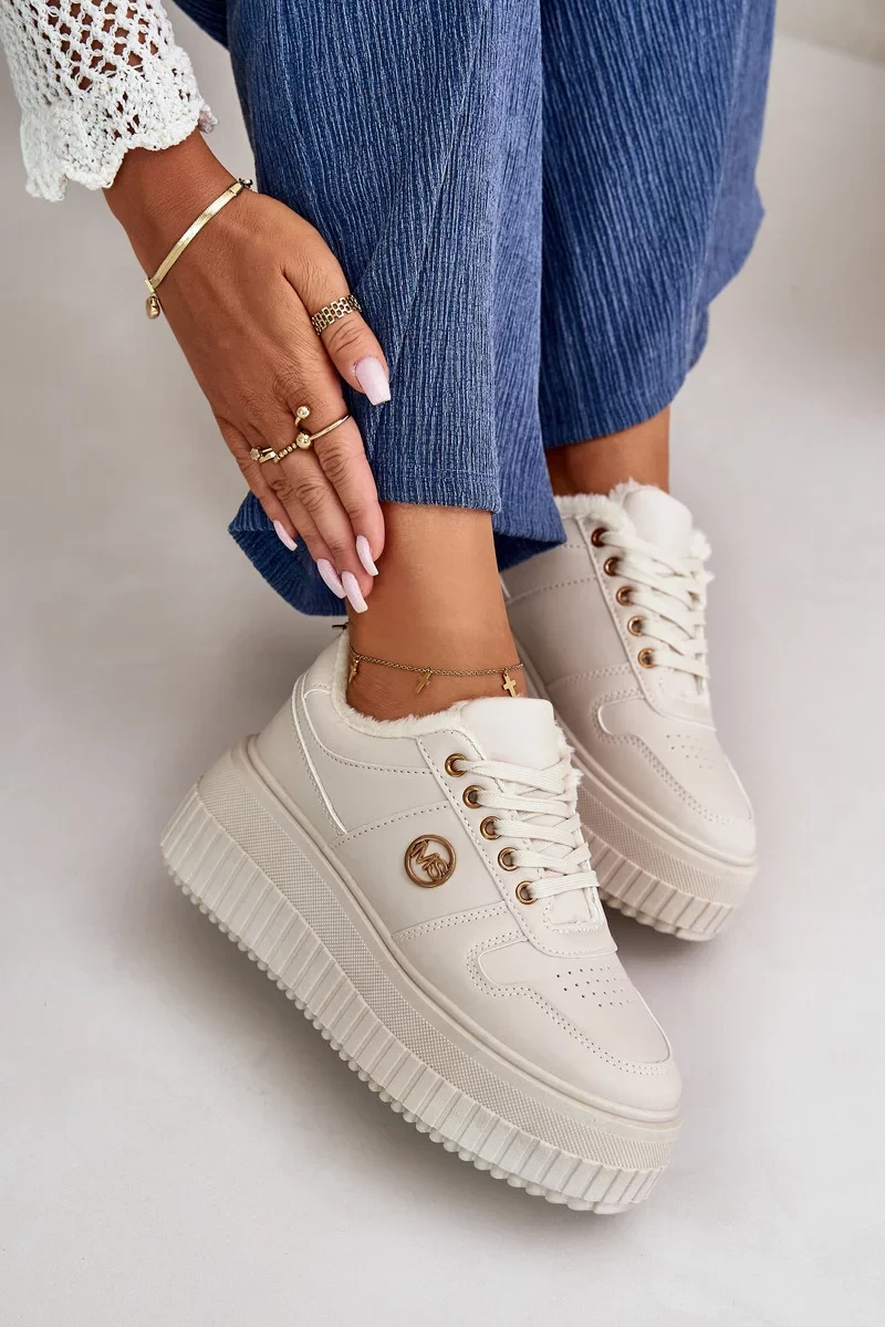 Tenisky Sportovní Boty Dámské Zateplené Na Masivní Podešvi Béžové Verissha